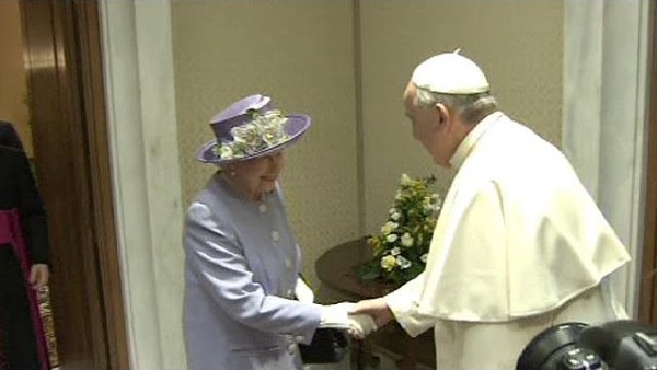 E dalle grandi cariche politiche passiamo alle grandi cariche religiose. Nel suo lungo regno la Regina Elisabetta II ha conosciuto ben cinque Papi. L'ultimo incontro tra un Pontefice e la Regina di Inghilterra risale al 3 aprile del 2014; in quell'occasione la Sovrana inglese e Papa Francesco si sono incontrati in Vaticano per una conversazione privata durata circa venti minuti. La Regina, per quell'evento, regalò al Santo Padre un cesto di prodotti tipici provenienti dal Regno Unito; si dice che Sua Maestà abbia tenuto a ricordare, scherzosamente, al Pontefice che quel dono fosse "solo per lui". In carica dal 1952, la Regina Elisabetta II aveva conosciuto nel 1961 Giovanni XXIII; in quell'anno la Chiesa Cattolica si preparava al Concilio Vaticano II.
